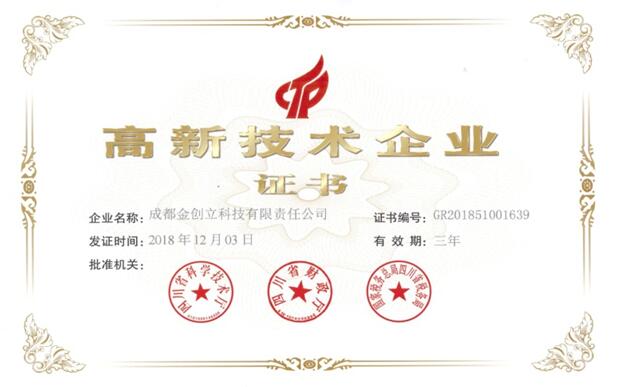 2015年10月被四川省授予“國家高新技術(shù)企業(yè)”